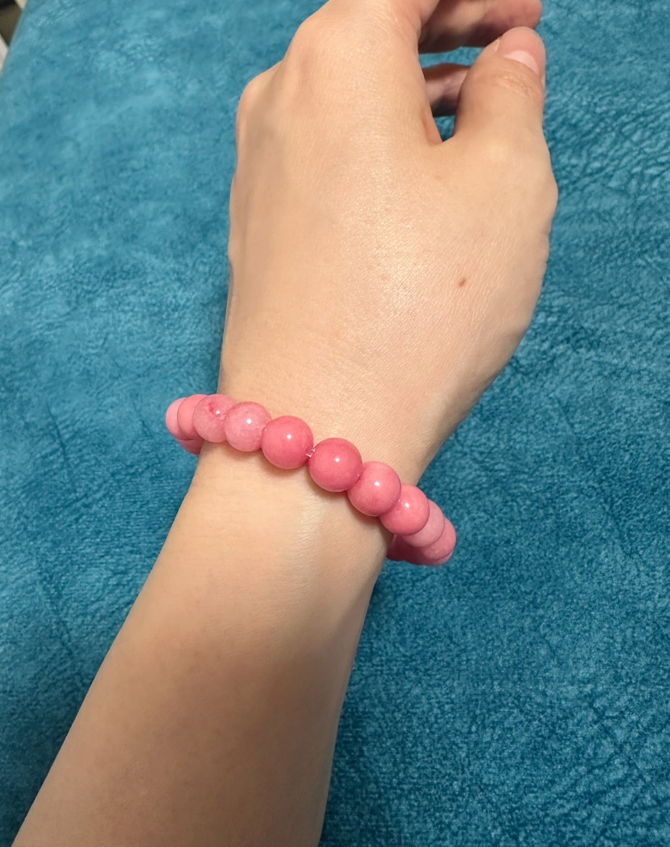 ウルグアイ産の最高級AAAグレードのみを厳選したこのブレスレットは、8mmで仕立てられ、光に透ける透け感と柔らかな桜ピンクが絶品。