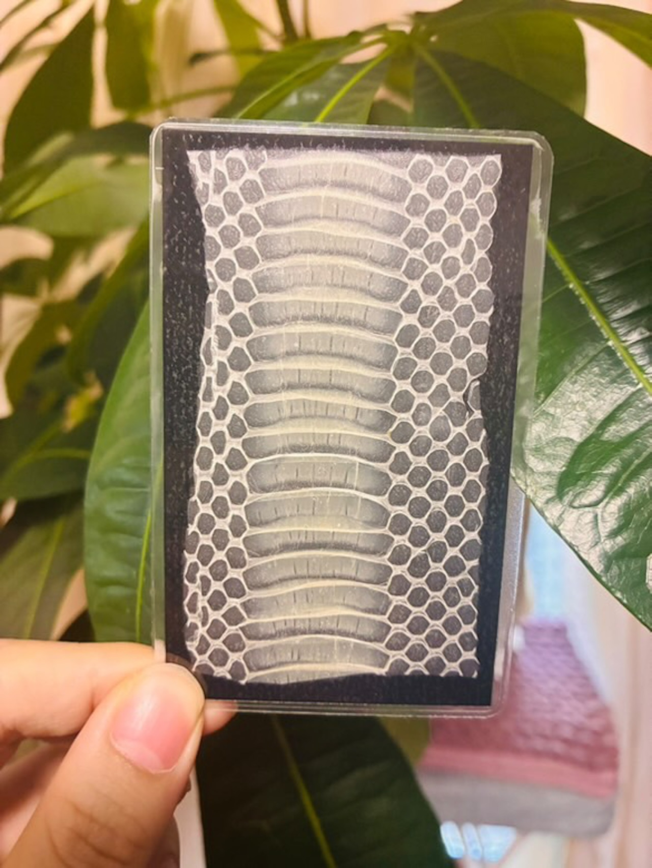 使用されているのは、神秘的な白蛇の抜け殻で、その独特の模様とエネルギーが宿る自然の宝物です。